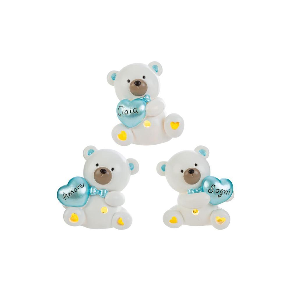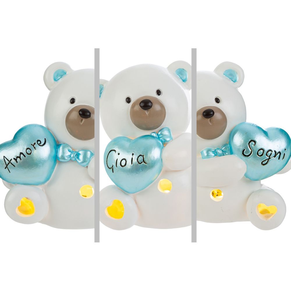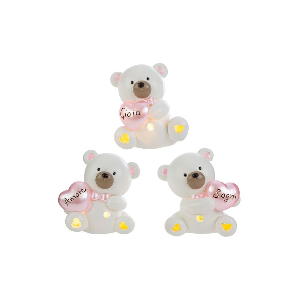 Bomboniera Orsetto con Led, disponibili in 3 varianti “Amore”, “Gioia”, “Sogni”, sia per bimbo che per bimba.